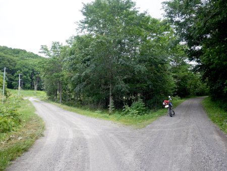 35線第2支線林道分岐を過ぎるとその先で左折ダート分岐が現れますが、ここはただの酪農農家への入口。立ち入っても貴重な探索時間の無駄になるだけなので、ここは立ち止まることなく右手方向に進むことを強く推奨します。 |