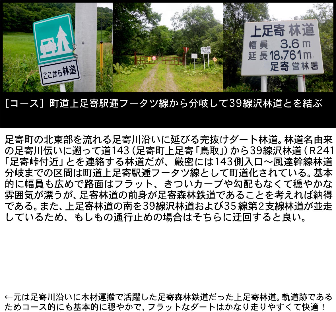 [ 所在地 ]足寄町 [ 状態 ]完抜ダート [ 接続林道 ]39線沢林道・町道上足寄駅逓フータツ線 [ 分岐林道 ]39線沢林道・シーアショロ2の沢林道・シーアショロ9の沢林道・吉野沢林道・114林班林道 |