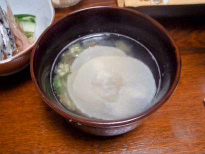 タケノコの輪切りとオクラが入ったお味噌汁。