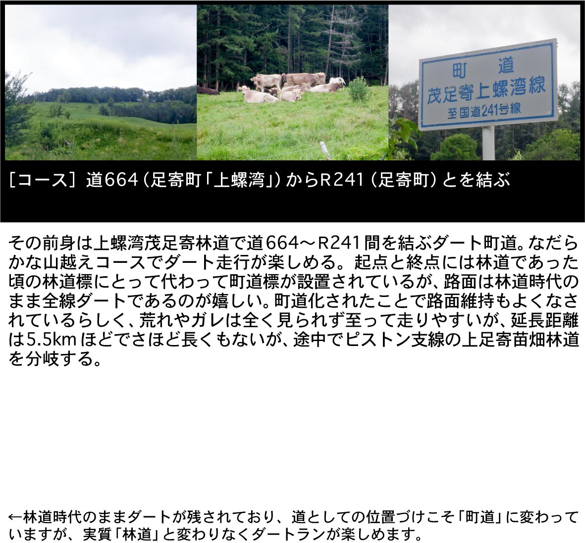 以前は上螺湾茂足寄林道だった道664〜R241間を大幅ショートカットする快適ダート町道 |