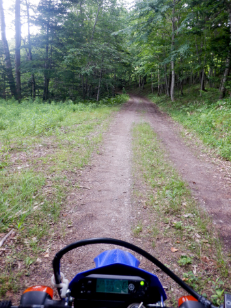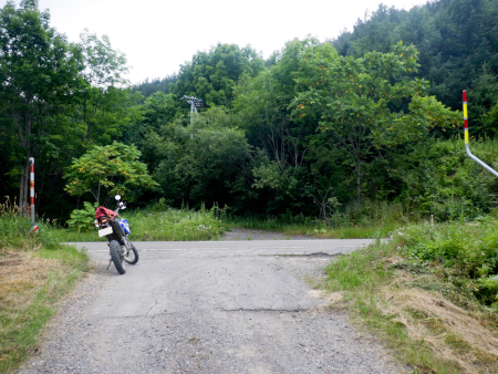 上螺湾集落最奥で見かけた離農農家の廃屋を過ぎると、ダートは山越えをすべく登り勾配区間が開始します。しかし、ダートは足寄町が管理維持する町道なので林道とは違って荒れ知らず。適度に踏みしめられた快適な路面状況が続きました。なお、地理院地図にはこの辺りで右折分していくクオナイ林道(ピストン)の道筋が記されているのですが、藪に埋れてしまったのか、探索時には気づくことなく通過してしまったことを付け加えておきますね。 |