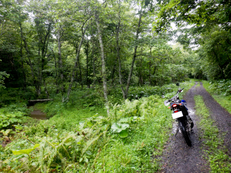 ちなみにこのセキネップ林道ですが、道すがらの森に奥深さは感じるものの、山深さは全く感じなかったです。そもそも丘陵地帯が広がる釧路町の林道なので、いわゆる山岳林道のような険しさはなく、雨が降った状態でもダートは走りやすかったですよ。 |