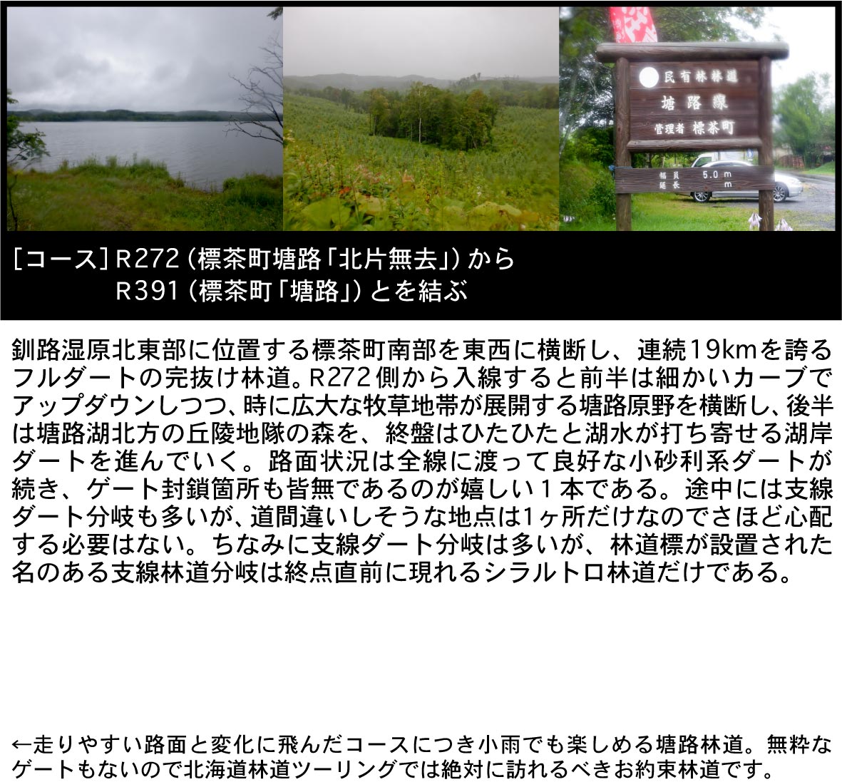 | 塘路湖東方の原野横断ダートから湖岸ダートまで魅惑の連続未舗装が楽しめるメジャーなロング林道! |
