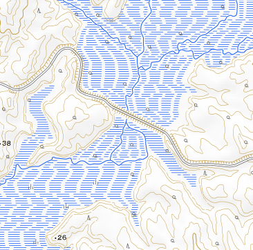 地理院地図で塘路橋のある地点を眺めるとこんな感じ。