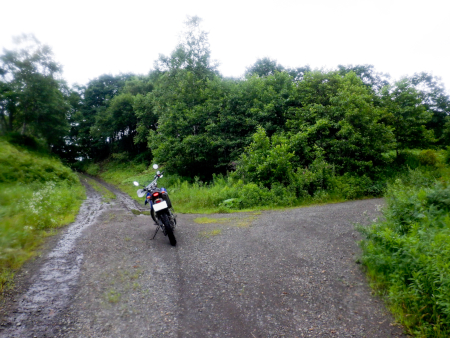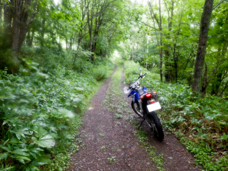 まさかの倒木にWR共々憮然としてしまいましたが、そのまま勢いに任せて乗り越えるには幹が大きすぎるし、かといってフロントを持ち上げて乗り越えるのも面倒。ここで潔く撤退することにしておきました。