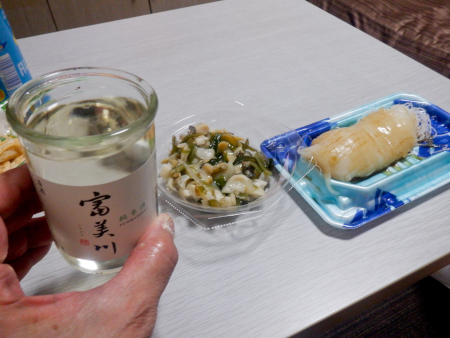 大浴場で旅の埃を流したら部屋に戻って晩メシ&晩酌タイムです! おかず兼つまみの惣菜は夕方の割引セールになっていたやつメインで、栄養の組み合わせも関係なく、おっさんに欲望のまま好きなものを選ばせるとこうなります。 自社製麺の五目あんかけ焼きそば(429円→386円) 肝醤油添付アルゼンチン産刺身用マツイカ(321円) 蒸し鶏穂先メンマ和え(321円)、つぶわさび(割干入り / 321円→260円) 適塩レシピの切り昆布の煮物(248円→223円) 合計 1611円 |