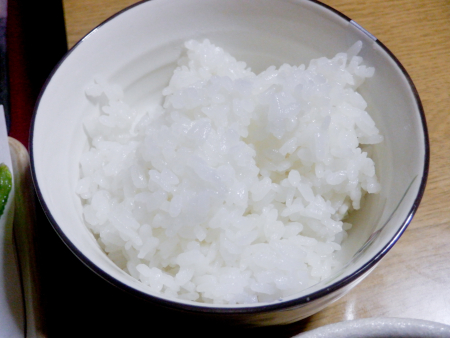 お櫃で出された「白いごはん」です。昨今、異常な米価格高騰によって庶民は備蓄米を強いられ、おいしい新米や銘柄米は高くて手が届きませんが、なんやかんや言ってみても、宿の夕食って白いごはんが美味しければ全てOKなんだよな〜。 ふんわりと立ちのぼる湯気と白米の香り、そして艶やかにふっくらと炊きあがった白米は見ているだけで幸せな気持ちになりますなぁ! |