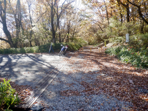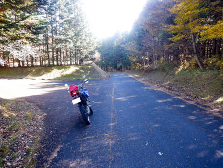 そんな現在地はここ。天神林道に乗り継いで300mほど南下した全国育樹際記念緑地の入口がある地点です。ここが天神林道の終点(起点?)になっており、わずわざやって来たのはここから引き返すことで天神林道全線走破を目論んでいるから。ちなみに天神林道終点から道なりに南下していくと高原林道に至ります。