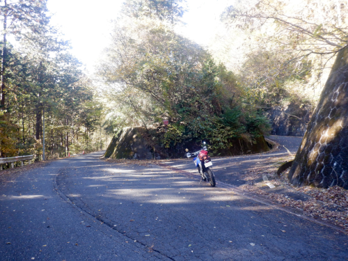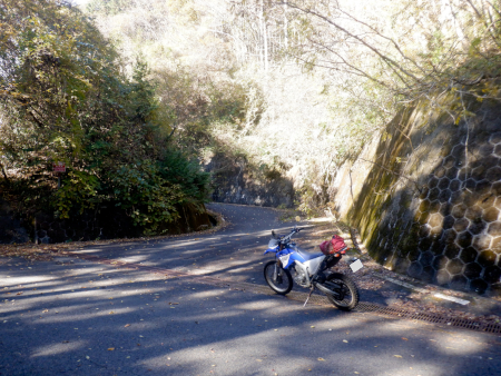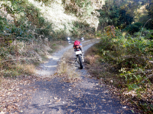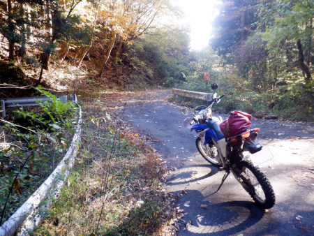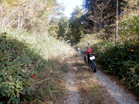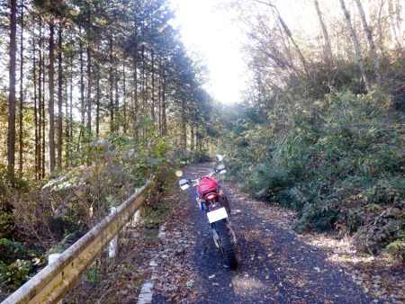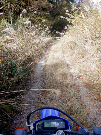 そんな生産の森林道ですが、ダート区間で最も草深かったのがこの地点。両路肩から枯れススキの穂がしなだれかかり、身体にワサワサと擦れる感触がぞっとしなかったですが、しかし、それだけに林道臭がぷんぷんで悪くはなかったですよ。