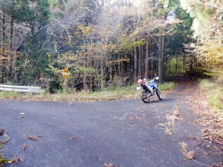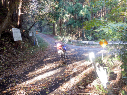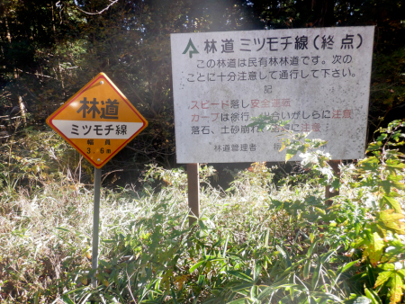 厳密には「終点」であることを示す林道標を確認したら即座にWRを反転。ここから引き返す形であらためてミツモチ林道にゴー!