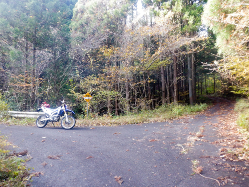現在地はここ。高原林道までの区間を往復してきたところですが、ミツモチ林道の未走行区間を探索すべく分岐は直進してそのまま南下します。