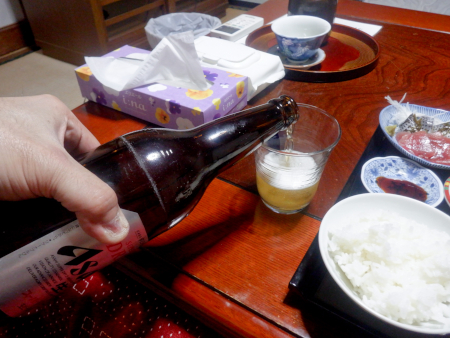 ではいただきまーす! まずは女将さんにキリンビール(700円)を注文、今日一日よく走り回った自分を労って黄色い麦酒でセルフ乾杯。その後は矢板の地酒十一政宗をちびりちびりと舐めつつ夕食をいただきましたが、結局食べ終わるのに1時間以上もかかっちゃいましたが、部屋食なので関係ないですね。