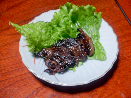 これは女将さんが知り合いからもらったシカ肉を「味噌焼き」にしたもの。いわゆる獣のジビエですが、当方はどのように調理しても僅かに残ってしまう獣臭さが超苦手。女将さんがせっかく出してくれたので頑張って残さず食べましたが、個人的にはジンギスカンでさえ厳しいのにこれはマジきつかった・・・。 それでもイノシシとシカは味噌焼きとか味噌煮でまだなんとか食べられますが、でもクマ肉だけは獣臭が異次元的に強烈過ぎて絶対に無理! かつて東北ツーリング中に某温泉宿でクマ肉を出されたことがありますが、どうしても食べられなかったです。また、北海道で猟師さんがぶった切ったクマ肉を煮込んだ熊鍋を食べているのを目撃したことがありますが、周囲に獣臭が充満してその場にいられないほどだったです。クマ肉は最低でもクマカレーにしないと絶対に無理っす。 |