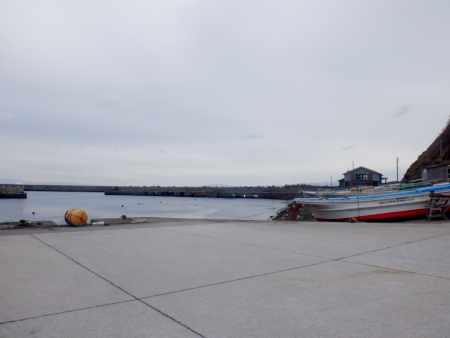 静かな九艘泊の漁港。九艘泊は昔はイカ漁が盛んな場所だったそうで、明治初年(1868年)の「新撰陸奥国誌」には、この辺では夏秋にイカを獲り、天日干しされたイカの数が数千枚にもなったと記されています。