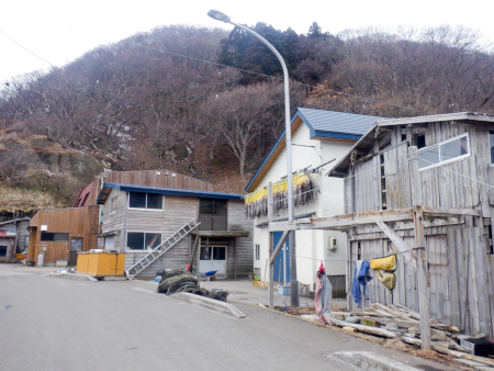 九艘泊では漁港のすぐ背後には、漁の船を収納する二階建ての舟小屋群が立ち並んでいますが、中には番屋のように立派な舟小屋もありました。ただし、岸壁が整備されたため、今はもう舟小屋は使われていないみたい。