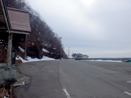 とはいっても真冬の県253の通行量はほとんど皆無。1台の車ともすれ違わないまま、佐井村「野平」を通りがかります。しかし、野平集落はダム建設により1981(昭和56)年に全住民36戸が離村した場所。人が定住する集落ではないので、県道だけは除雪されていますが、冬は誰もいない事実上の無人地帯と化しています。