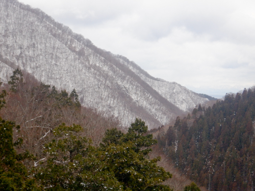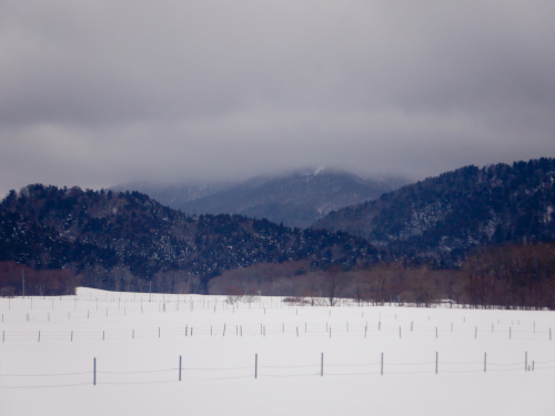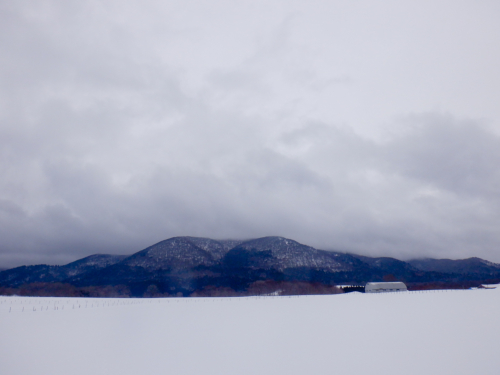 公共交通機関は通っておらず、最寄りの集落からも遠くて冬は隔絶の地となる野平。道すがらには寒々とした雪景色が広がり、実際、寒くてたまらないのですが、山々の峰を覆い尽くす鉛色の雪雲を目にすると、なんだか気が滅入ってくるなぁ・・・。