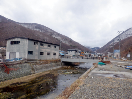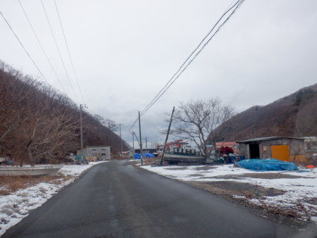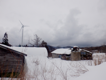 交差点の傍には集団移転で放棄された野平集落の家屋が・・・。崩れかけた牛舎とサイロが見えますが、雪に埋もれた姿が痛々しかったです。