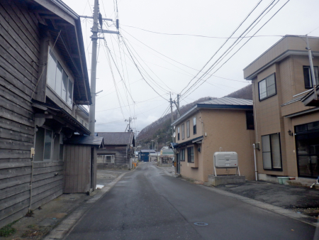 通りを歩く人の姿もなくてひっそりと静まり返った牛滝の家並みメインストリートを進んでいきます。牛滝川河口に位置し、西は津軽海峡に面して対岸に津軽半島、北西に松前半島を望む牛滝は村としての歴史は古く、寛文年間(1661〜)の頃からすでに津軽海峡を行き交う船の寄港地になっていたとのことのこと。