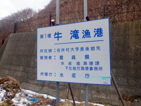 牛滝漁港を示す看板ですが、牛滝は港としての歴史も古くて、1699(元禄12)年、当地を支配していた南部藩によって川内湊、佐井湊と共に「田名部七湊」に指定され、蝦夷地、西廻り、東廻り航路の寄港地になっています。