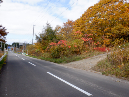 ちなみに秋の季節の野平はこんな感じ。前方に青い行き先表示板が掲げられた交差点が見えていますが、10月になると木々が一斉に色づき始め、どこもかしこも燃えるような紅葉で埋め尽くされます。
