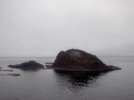 ちなみに眺めているのは願掛岩から西北西の北海道渡島半島南西部、福島町と知内町の境界に位置する「矢越岬」がある方向。そして今いる場所も「矢越岬」。奇しくも同名の矢越岬が津軽海峡を挟んで向かい合って存在しているんだよな。 |