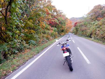 そしてこれは10月下旬の紅葉最盛期の頃のだいたい同じ場所。どこもかしこも白一色で埋め尽くされた冬は異なり、かなり煌びやかな雰囲気が漂います。さすがに雪に埋もれる真冬にバイクは無理ですが、紅葉シーズン中なら話は別。秋の紅葉まみれとなったかもしかラインを一度訪れてみることをおすすめします。