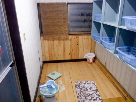 温泉浴場の脱衣所です。いつの間にか床と壁の一部がきれいにリフォームされていましたが、女将さんいわく「なにぶん建物が古いので」とのことでした。