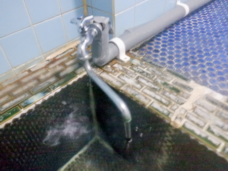 コポコポコポ・・・。温泉はいうまでもなく、宿の建物のすぐ脇にある源泉からの極上新鮮な湯の掛け流し。結晶化した温泉成分がガチガチに付着した塩ビのパイプから、アルカリ性単純温泉の熱い湯が常に注がれ続けています。 ちなみに湯野川温泉には源泉は2つあって、そのうちの1つは岡村旅館と寺島旅館に、残りのもう1つの源泉は「共同専用温泉」および、「農々園」に利用されていますが、観光客が入浴できるのは旅館の温泉のみ。共同専用温泉は地元住民専用だし、農々園はもうずっと先の見えない休業状態が続いているし。 |