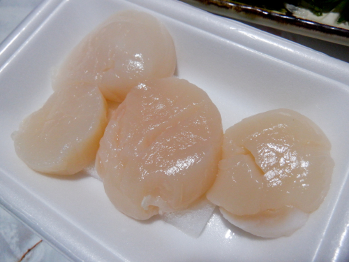 じゃじゃ〜ん、密かに別ルートで入手しておいたホタテです! しかも、肉厚でぷるんぷるん貝柱の刺身。しっかりとした弾力のある食感で噛み締めるたびに味わい深い濃厚な風味と旨味が口内で爆発! なお、ホタテの貝柱の刺身は醤油+ワサビでいただきますが、醤油をつけ過ぎるとホタテの味が分からなくなるので、醤油はちょっとだけつけるのがポイントっす。 |